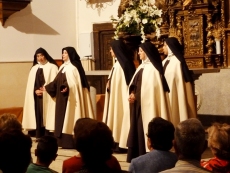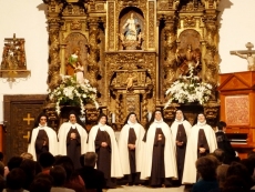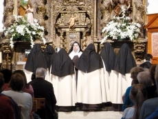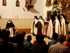 El público, absolutamente volcado en el montaje de principio a fin, no perdió detalle durante todos los pasajes de la obra. La música del siglo XVI estuvo presente y sabiamente gobernada por la mano del maestro ciego Francisco Salinas (coetáneo de Teresa de Jesús) y encarnado por un músico también ciego, Adrián Rincón. La iglesia, muy bien conservada y con un púlpito espléndido tallado en granito, tiene una perfecta acústica y todo se desarrolló en riguroso directo y sin microfonía: la música, las canciones, el recitado de poesías así como todos los diálogos de los diferentes actores y actrices.