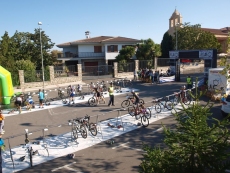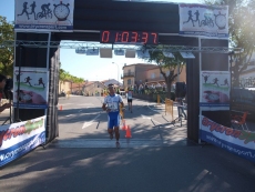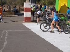 En lo referente a la prueba para adultos, que contó con medio centenar de participantes, constó de una carrera a pie de 5 kilómetros (por un circuito urbano), un tramo de 22 kilómetros de bici (bastante técnico y con cierta dureza), y un último tramo a pie de 2,5 kilómetros.