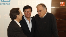 Por su parte, Javier Iglesias, presidente provincial del PP y candidato al Senado por Salamanca, señaló a los asistentes que "vuestra presencia nos arropa y nos alienta para dar lo mejor del partido de cara al 20D" frente al "riesgo del tripartito", en una campaña electoral "intensa y crucial". "Para el PP han pasado los peores momentos, en los que nos tocó enderezar a España, siendo ahora el momento de comparar propuestas, de ver quién hace y quién solo se dedica a decir". El PP, añadió, "es el partido que ha tenido el tacto y el presidente adecuado para sacar al país adelante". Un partido que, aseguró, "está también al lado del mundo rural, no como Ciudadanos que quieren acabar con los alcaldes y concejales de 352 municipios de la provincia". "No lo vamos a tolerar", remarcó Iglesias. Iglesias transmitió en su intervención el agradecimiento sincero del PP a Isabel Jiménez y José Muñoz, senadores en esta legislatura.