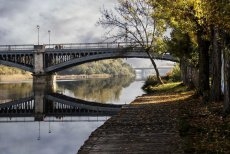 El río tiene orillas de sueño, el puente brazaletes de plata. En los árboles, el otoño vive su atardecer. Las hojas cubren el embarcadero, donde un día tocaste un ramo de corazones.