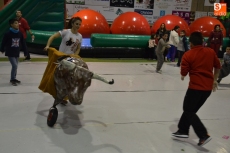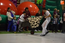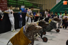 Los niños presentes en el pabellón tuvieron la oportunidad de dar unos pases a los astados (con capote incluido) además de correr escapando de ellos por toda la superficie del pabellón (incluso se habían creado unos toriles).