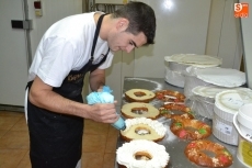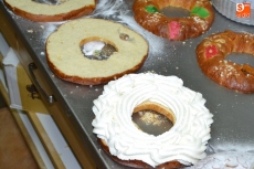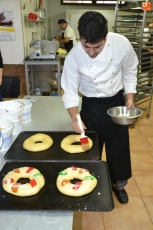 En maratonianas jornadas de trabajo que comienzan a las 5.00 de la mañana, los empleados de la Pastelería están ya en pleno proceso de fabricación de los roscones, que se realizan de forma totalmente artesanal, conservando la tradición de una Pastelería con más de 100 años de andadura (es la 4ª generación).