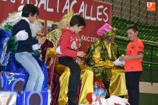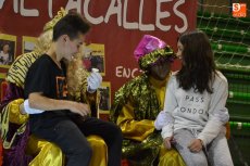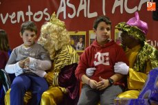 Los Reyes llegaron al Pabellón a media tarde, subiéndose al escenario del recinto donde fueron recibiendo a todos los niños que quisieron hablar con ellos, fueran de la edad que fueran. Eso sí, algunos peques no se llegaron a sentar en el regazo de los Reyes porque no se quisieron despegar de los brazos de sus padres.