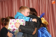 Escoltados por sus pajes, SS.MM. los Reyes Magos llegaron a Aldeadávila ante el recibimiento de niños y padres que aguardaban en el salón de actos del Centro Cultural. Tras el saludo de bienvenida a cargo de uno de los pajes, los Reyes pasaron a entregar a cada niño un pequeño obsequio en recuerdo de su paso por esta localidad.