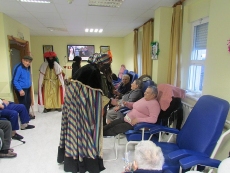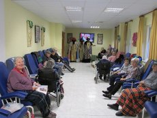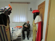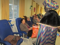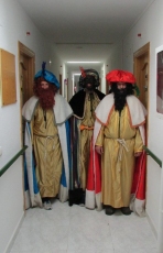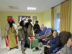 Melchor, Gaspar y Baltasar repartieron caramelos en la cabalgata y entregaron un detalle a cada uno de los mayores en la residencia