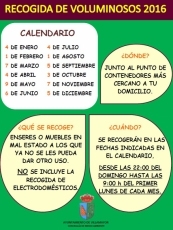El Ayuntamiento de Villamayor de Armuña ha hecho público el calendario para la recogida de voluminosos y enseres en mal estado para este año 2016. Además, recuerda a todos los vecinos que no se recogen electrodomésticos, dado que hay empresas especializadas en ello y que las tiendas y proveedores tienen la obligación de retirar los antiguos.