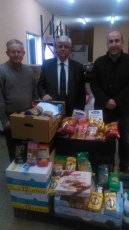 El presidente de la Asociación Cultural Virgen de Sacedón, Benjamín Gurrionero, y el párroco de la localidad, Manuel Abad de Diego, han entregado esta tarde al Banco de Alimentos de Salamanca un total de 325 kilos de productos recogidos gracias a la campaña desarrollada estas navidades en la exposición de su Belén Solidario instalado en la iglesia parroquial de Monterrubio de la Sierra.