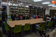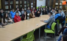 El IES Fray Diego Tadeo de Ciudad Rodrigo recibió en la mañana del jueves al escritor Luis García Jambrina, que se acercó al centro para hablar sobre el libro El Manuscrito de Piedra que ha escrito.