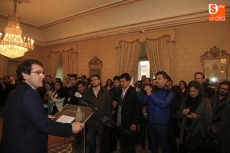 Cerca de 250 alumnos procedentes de 15 países, que se encuentran en Salamanca participando en la XXXVIII edición de los Cursos de Especialización en Derecho de la USAL, han sido recibidos en el Ayuntamiento, donde se les daba la bienvenida y se les invitaba a disfrutar de una agradable estancia en la ciudad, en la que permanecerán hasta el 29 de enero.