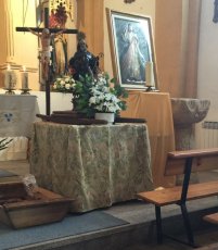 Los actos se abrieron una solemne misa, a la que asistieron los mayordomos de a celebración, todos ellos jóvenes, entre los que se encuentran Luis Alberto, Christian, Ernesto y Pedro. Tras la misa, se desarrolló la procesión por varias calles del pueblo hasta regresar a la Plaza de la Iglesia.