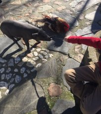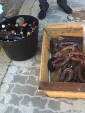 Una vez allí, tuvo lugar el ofertorio y la clásica subasta del aguinaldo de San Antón. En primer lugar, se subastó una artesa con productos de la matanza, varias botellas de vino, licores y cava. Posteriormente, se sorteó un cerdo y un gallo. En total se recaudaron unos 300?.