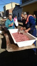 A la hora de comer, degustaron una rica paella preparada en una cochera, donde durante la tarde se procedió al enfusado del embutido. Con esta iniciativa el objetivo es defender la forma tradicional de realizar las matanzas y que no se pierda.