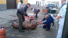 La familia Zamarreño Pastor de Ciudad Rodrigo cumplió en la jornada del sábado su tradición de realizar la matanza al estilo tradicional en plena calle, dentro del Barrio Nuevo de Ciudad Rodrigo.