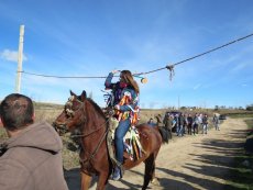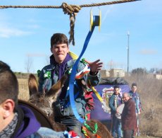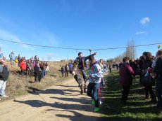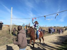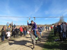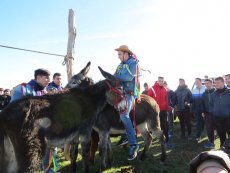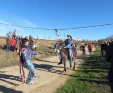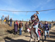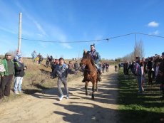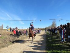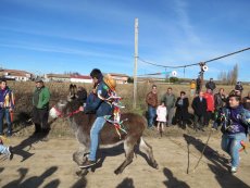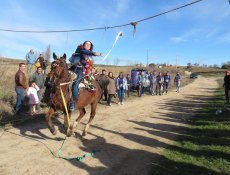 Posteriormente, en la misa han ofrecido el gallo y las cintas para después acudir a la cuesta de San Benito para cumplir con la tradicional y esperada carrera de cintas montados a caballo y en burro, un acto que ha congregado a numeroso público para animar a los jóvenes quintos.