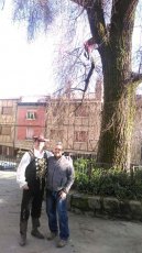 Del mismo modo, visitaba Villanueva del Conde, donde posaba junto al álamo ubicado en el centro de esta localidad, del que se cayó el 2 de abril de 2005. Un percance grave del que, afortunadamente, se recuperó.