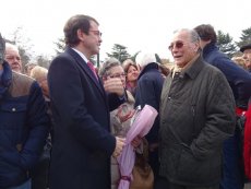 El recuerdo del maestro Julio Robles se mantiene más vivo que nunca, como ha quedado demostrado en el tradicional y multitudinario homenaje junto a la plaza de toros que el Ayuntamiento de Salamanca y la Federación de Peñas Taurinas de Salamanca han celebrado este mediiodía coincidiendo con el decimoquinto aniversario de su fallecimiento. El alcalde de Salamanca, Alfonso Fernández Mañueco, y Victoriano Valencia han sido los encargados de despositar el ramo de flores a los pies de la estatua del matador, una ofrenda a la que se han sumado Santiago Martín, 'El Viti', familiares del diestro y miembros de la peña taurina dedicada a Julio Robles.