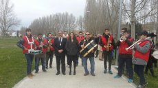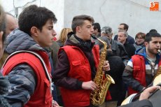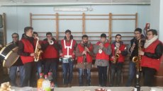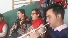 En esos minutos se unieron a la fiesta los integrantes de la Charanga Los Bemoles, que interpretaron unas cuantas canciones de camino al convite, que se desarrolló en el gimnasio del Colegio El Puente.