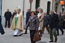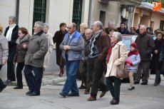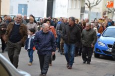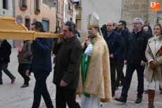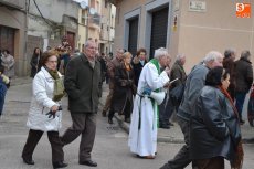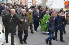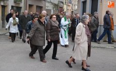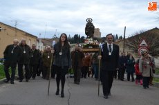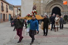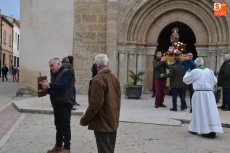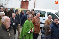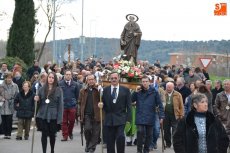 A mediodía, dio inicio la procesión por las calles del barrio, que fue presidida, al igual que la misa posterior, por el Obispo de la Diócesis Raúl Berzosa. Como representantes políticos, estuvieron presentes los concejales del PP Ramón Sastre, Miguel Matías Rubio, Carolina Paniagua y Jesús Sánchez Agudo. La comitiva procesional fue guiada por los cánticos del párroco Celso Martín Santos.