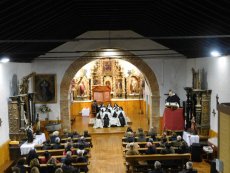 Se van sucediendo, pues, las distintas escenas en el altar mayor de la iglesia, en este caso el de Larrodrigo, cuya maravilloso templo a medio camino entre el gótico y el renacimiento, alberga un altar barroco, marco en esta fría tarde, para el calor y la luz que "Teresa, la jardinera de la luz" transmitió, como ya nos tiene acostumbrados. Según su productor, Javier de Prado, son estos lugares, al estar tan llenos de emociones y vivencias de las gentes, a lo largo de un tiempo secular, los más adecuados para este montaje. Quizá en esto, radique también parte de su éxito. Aunque es sin duda, el vestuario y los pocos elementos que acompañan la escenografía, los que son igualmente responsables de lo mismo. Larrodrigo acoge la función número 106, que da fe de ello. Un púlpito para el padre dominico, enviado de la Inquisición, unos hábitos que visten las monjas carmelitas, o el órgano, réplica exacta del usado por el maestro Salinas, son suficientes para transportar al público a la atmósfera del siglo XVI.