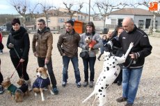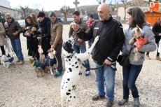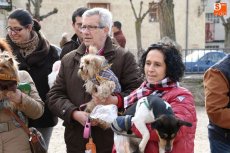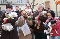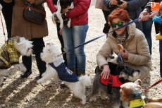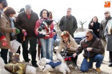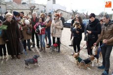 Una veintena de mascotas, perfectamente ataviadas para la ocasión, acudieron a la bendición de los animales tradicional de la festividad de San Antón. Tras la misa del domingo en la iglesia de San Pedro, los dueños y sus mascotas se congregaron en la Plaza del Peregrino para renovar un año más la tradición.