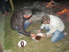 En torno a la hoguera se repartieron chochos, dulces y vino. Además, algunas personas llevaron longanizas para asar. En la mañana del miércoles, fue momento para ponerse elegante para asistir a la misa y procesión en honor a San Sebastián.