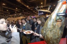 El jamón de Guijuelo sigue siendo el producto estrella de la Feria Internacional de Turismo. El stand del Ayuntamiento de la villa acoge cada día a una multitud de visitantes interesados en los productos ibéricos, mientras que el showcooking de Fran Vicente encandila a gran cantidad de curiosos en cada sesión.