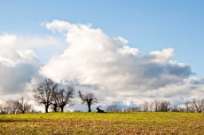 Este cielo de días azules sostiene el peso de lo cotidiano, donde la tierra espera su fermento tras el frío y la humedad. Nada llena más de vida que el sol de invierno cuando se van las alas de la niebla, ciega y estéril. En el silencio, donde todo purifica, los pastos emergen como vientre de semillas.