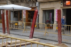 En lo que se refiere a las agujas, durante la mañana del lunes se estuvieron colocando prácticamente las últimas en un lateral de la Avenida Conde de Foxá o en la zona más cercana de los toriles de San Pelayo.