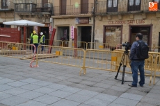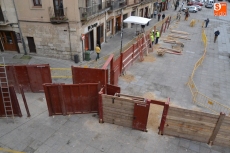 El cambio más relevante que se ha empezado a producir en Ciudad Rodrigo tiene lugar en la Plaza Mayor. Tras el montaje la semana pasada de los toriles exteriores, en la mañana del lunes se procedió a colocar el callejón que conecta los toriles con el 'rectángulo mágico' que conforman las barreras de la Plaza, que en la mañana del lunes también se empezaron a colocar por parte de los operarios municipales. Este proceso de montaje está siendo registrado por una cámara de vídeo.