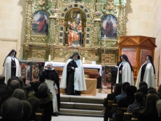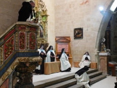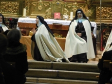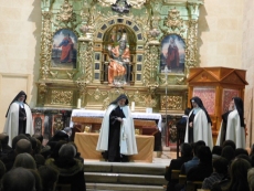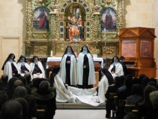 Es particularmente sobrecogedor y a la vez simple el cuadro escénico en el que las hermanas carmelitas que la defienden a fuego a lo largo de toda la obra, nos van declamando como en una letanía todas estas palabras que según Teresa reflejan la esencia de Dios en nuestra alma. Porque "Teresa, la jardinera de la luz", es un compendio de cuadros estéticos, bellos en su forma, pero que sostienen un texto, bello también por su autenticidad y sencillez, dotado de una gran fuerza y originalidad. No podría ser de otra manera si de lo que se trata es de acercarse a la carmelita. Sabemos lo apropiado que resulta para esta obra, tener como marco escénico los altares de las iglesias; y no sólo porque apoyan el argumento, sino por la carga de energías emocionales que estos recintos sagrados ofrecen a creyentes y profanos, conscientes todos, de la importancia de este dato. Hablar de una vida con fuerza necesita del apoyo de la fuerza de muchas vidas, y las iglesias, de forma secular nos han reunido en torno a lo mejor y peor de nuestras existencias.