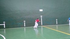 En mano parejas jugaron Javi y Rodríguez II del San Atilano (Zamora) contra José María y Juanín de Las Villas (Villoria). El marcador en este caso resultó favorable para los zamoranos al ganar por 10-5 y 10-9.