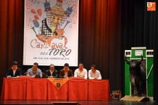 La velada se abrió con el paseo hasta el Teatro, en cuyo interior tomó la palabra en primer lugar uno de los miembros de Carnavaldeltoro.es, Iván Ramajo, que recordó el 10º Aniversario que cumple la Asociación este año. En este punto, se proyectó el primer germen de difusión de la Asociación: un vídeo del traslado de los toros del encierro a caballo que organizó el Bolsín Taurino Mirobrigense en 2006.