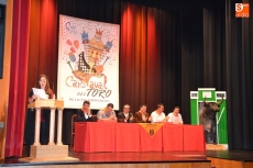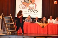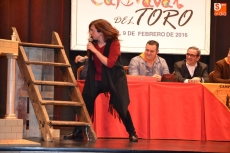 La periodista mirobrigense Rebeca Jerez puso muy alto el listón de pregones del Carnaval 2016 con su intervención en la noche del jueves para la Asociación Cultural Carnavaldeltoro.es, que abría el ciclo de pregones sobre las tablas del Teatro Nuevo Fernando Arrabal. Precisamente, Rebeca Jerez, que ya había pronunciado pregones precarnavaleros (el de las Casetas de la Plazuela y el de El Porvenir) debutaba sobre las tablas del Teatro.
