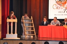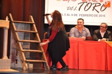 En esta ocasión, Rebeca Jerez ofreció un pregón muy ameno, con participación del público en varios momentos, en el cual llevó hasta el Teatro 'un tablao', que se unió al toro que ya presidía el escenario.