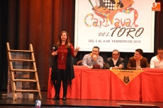 Rebeca Jerez alabó la tarea de la Asociación Carnavaldeltoro.es, a las charangas, a Mari La Campanera, y a José Luis, el que ideó la página web que dio paso a la Asociación. A continuación, la pregonera se centró en la entidad, resaltando que su labor de forma altruista "es cosa de todo el año" y no sólo de los días del Carnaval. Tras mencionar los nombres de todos los integrantes, apuntó que la Asociación es "una gran familia", animándoles a seguir "imaginando y creando".