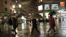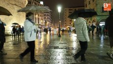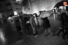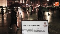 Cáritas ha retomado hoy en la plaza de la Iglesia de San Marcos (junto al Toscano) los Círculos de Silencio con el lema 'Deja tu huella por la paz'. A pesar de la lluvia, los salmantinos participaron en esta acción solidaria.