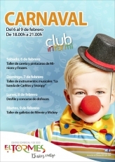 Un año más el Centro Comercial El Tormes celebrará el Carnaval con diferentes talleres infantiles que girarán en torno a los personajes de animación más queridos por los niños y un desfile concurso que tendrá lugar el lunes 8 de febrero.