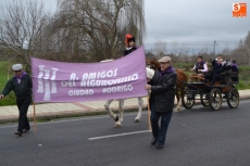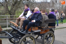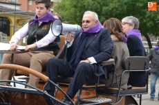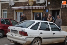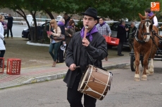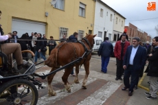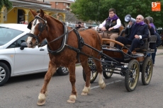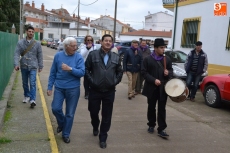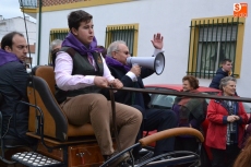 Lo que no varió fue la forma de llegar hasta el lugar del pregón: a las puertas del Bar La Mimosa, sede de la Asociación, se reunieron los integrantes de la misma para recibir al pregonero, Javier Lorenzo, y a su presentadora, Isabel Bernardo. Ellos dos montaron en una calesa en la que también viajó el presidente de la Peña, Joaquín Sánchez 'Tato', dentro de una comitiva que abría la pancarta de la Asociación y la alguacililla, Patricia Zamarreño.