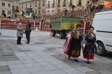 Los actos dominicales (anunciados mediante cohetes) comenzaron con la reunión de las mujeres en las inmediaciones del Mercado de Abastos, desde donde se dirigieron en comitiva hacia la Plaza Mayor. Durante el camino se encontraron con un 'toro' con el que anduvieron jugando. Una vez llegaron a la Plaza, las Águedas llamaron la atención de las personas que estaban trabajando en la construcción de los tablaos.