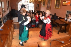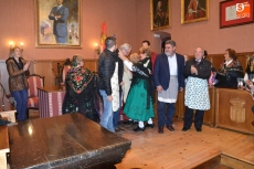[Img #543831]Después de realizar algunos bailes en la Plaza, las Águedas subieron a la Casa Consistorial, donde fueron recibidas por el alcalde Juan Tomás Muñoz, y los concejales Carlos Fernández Chanca, Cristian González, José Manuel Jerez, Jesús Sánchez Agudo, Carolina Benito y Beatriz Jorge Carpio. Como inicio del acto, el alcalde recitó unas copillas sobre la vida conyugal de hace más de un siglo, recogidas de una publicación del 11 de febrero de 1904.