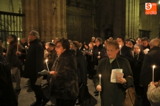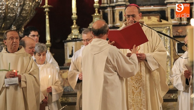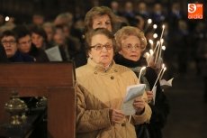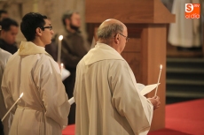 En el transcurso de la celebración, presidida por el Obispo de Salamanca, se han presentado las dos jóvenes que van a recibir en Pascua los sacramentos de iniciación cristiana, Marion Didier y Sonia Nahavid.