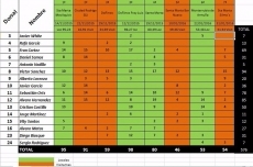 En cuanto a estadísticas de juego, el Practic AIC ostenta el título de equipo que más puntúa, 576 puntos en 8 partidos, casi cien más que el seguidor más próximo, el Café Nuevo Abadengo de Santa Marta, que atesora 494 puntos a favor. Sin embargo, aunque el equipo entrenado por Vadi esté el primero, atesora el mismo número de victorias y derrotas que el segundo y tercer clasificados, el Nuevo Abadengo y el Zapatería Silmo's. Este último equipo fue al que venció el Practic AIC a domicilio para recuperar el liderato.