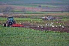 (LA MIRADA).- Cigüeñas tras la arada en tierras de Cantalpino