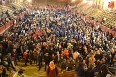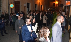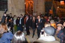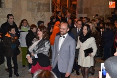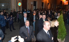 Enrique Crespo se puso en marcha en el Parador, en dirección a la Plaza Mayor, mientras que por la calle Madrid llegó al ágora mirobrigense la Banda Municipal de Música, para darle una bienvenida musical al pregonero, que como es tradición, firmó en el libro de honor del Ayuntamiento dentro del Salón de Plenos. Allí, el alcalde Juan Tomás Muñoz le impuso el escudo del Ayuntamiento de Ciudad Rodrigo.