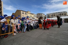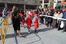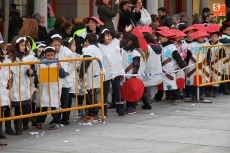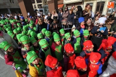 La programación del carnaval guijuelense avanza hoy viernes con un inicio multitudinario. Los colegios Filiberto Villalobos y Miguel de Cervantes celebraron el tradicional desfile de carnaval. Los alumnos partieron de sus respectivos colegios en torno a las 11:30 y marcharon hasta la plaza Mayor. Allí el Ayuntamiento tenía preparado el lugar para que cada clase desfilara mostrando los disfraces que los escolares elaboraron en las últimas semanas.