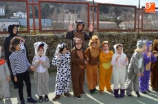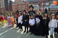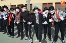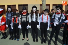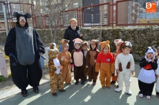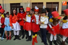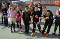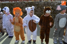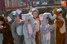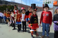 El colegio Filiberto Villalobos ha organizado un gran desfile, al que han invitado a todos los padres y en el que profesores y alumnos se han disfrazado de personajes y animales del circo. Han dedicado parte de la mañana a los complejos disfraces y maquillajes, y después de desfilar por el patio del colegio ante los invitados, varios niños han interpretado un cuento, finalizando la mañana con un gran baile de disfraces.