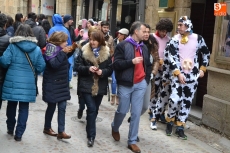 En la jornada sabatina, como ocurre todos los días de Carnaval, los integrantes de la Asociación se reunieron ?junto a numerosos amigos- en las antiguas cocheras de Alipio de la Rúa del Sol, desde donde se dirigieron a la Plaza Mayor, pasando por la puerta de la Iglesia de San Agustín para rezar la habitual oración de protección al Santo.