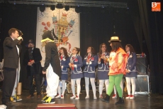 En la categoría de 4 a 8 participantes, el primer premio, con 200? de recompensa, recayó en Los cuadros con arte llegan al Carnaval, seguido de Los calendarios de la abuela, con 100? de premio. Por último, en la categoría de 1 a 3 participantes, la primera plaza fue para Regreso al futuro: regreso al Carnaval, con 90? de premio; y la segunda, para Vacaciones en Ciudad Rodrigo en Vespa, con 60? de recompensa.