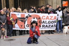 Salamanca se ha sumado hoy a otras 14 ciudades españolas que se han manifestado contra la caza con galgos y otras razas. España es el único país de la UE donde está permitida la caza con galgos y podencos.