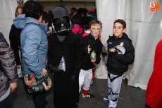 Una larga cola de niños se organizó frente a la puerta de la carpa, donde se repartieron 700 bolsas de golosinas a medida que los niños iban entrando. Una vez en la instalación, se disfrutó del tradicional baile del carnaval guijuelense.